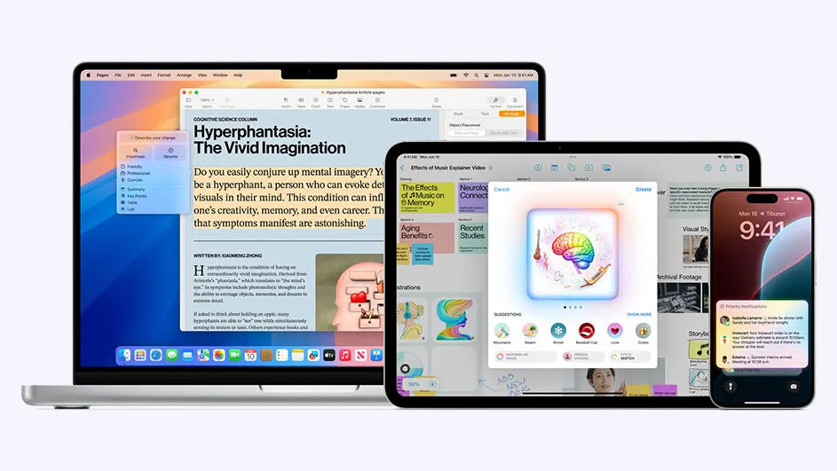 Prêt à vous faciliter la vie avec Apple Intelligence ? Avec ses nombreuses fonctionnalités puissantes et pratiques Apple rend l’utilisation de l’IA plus intuitive que jamais. Pour en profiter, il suffit de posséder l’un des appareils compatibles suivants :