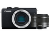 Appareil photo hybride / Objectif EF-M 15-45mm f/3.5-6.3 IS STM / Sac à bandoulière SB-130 / Carte mémoire SD 16 GB / Chiffon de nettoyage / Bouchon de boîtier R-F-4 / Courroie de cou EM-200DB / Batterie LP-E12 / Chargeur de batterie LC-E12E / Câble d'alimentation / Bouchon d'objectif E-49 / Bouchon anti-poussière de l'objectif EB / Manuel