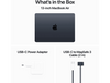 Le MacBook Air intègre deux ports Thunderbolt, une prise casque, le Wi-Fi 6E, le Bluetooth 5.3 et un port de charge MagSafe. Vous pouvez connecter jusqu’à deux écrans externes en gardant le clapet de votre ordinateur portable fermé. Il est livré avec un câble MagSafe de la même couleur que le MacBook Air. Il est aussi équipé d’un Magic Keyboard rétroéclairé avec Touch ID, pour un déverrouillage et des paiements sécurisés.