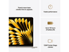 L’écran Liquid Retina de 13 pouces prend en charge un milliard de couleurs. Les photos et les vidéos ressortent grâce à un contraste marqué et à des détails impeccables, tandis que le texte est parfaitement net. Bénéficiez d’une qualité d’image et de son incroyable grâce à la caméra 12MP Center Stage, aux trois micros et aux six haut parleurs avec Audio spatial.