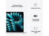 L’écran Liquid Retina de 13 pouces prend en charge un milliard de couleurs. Les photos et les vidéos ressortent grâce à un contraste marqué et à des détails impeccables, tandis que le texte est parfaitement net. Bénéficiez d’une qualité d’image et de son incroyable grâce à la caméra 12MP Center Stage, aux trois micros et aux six haut parleurs avec Audio spatial.