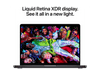 Le sublime écran Liquid Retina XDR de 14,2 pouces (36.06 cm) aux bords arrondis affiche une luminosité HDR de pointe pouvant atteindre 1 600 nits et un contraste de 1 000 000:1 pour des images à couper le souffle avec des noirs profonds et des tons clairs éclatants. L’option d’écran nano-texturé disponible sur certains modèle permet de réduire les reflets. Avec un boîtier constitué d’aluminium 100 % recyclé, le MacBook Pro est exceptionnellement bien conçu et pensé pour durer. Il est disponible en finition argent ou noir sidéral.