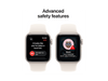 Envoie un message, prend un appel, écoute de la musique ou des podcasts, utilise Siri et reçois tes notifications. La montre SE 3 (GPS) fonctionne avec ton iPhone (11 ou plus récent) ou un réseau Wi-Fi pour te permettre de garder le contact. De plus, la SE 3 peut détecter une mauvaise chute ou un accident de voiture grave, puis automatiquement t'aider à contacter les secours et alerter tes contacts d’urgence. Enfin, la fonctionnalité Accompagnement peut informer automatiquement tes proches lorsque vous arrivez à destination.