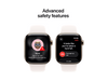 Dotée d’une batterie performante, la Watch S11 offre jusqu’à 24 heures d’autonomie en utilisation normale. Et une charge rapide de 15 minutes seulement suffit pour offrir 8 heures d’autonomie supplémentaire. De plus, la Series 11 (GPS + Cellular) te permet d’envoyer des messages, de passer des appels, de télécharger de la musique et des podcasts, ou contacter les secours sans avoir ton iPhone à proximité. Enfin, la Series 11 peut détecter une mauvaise chute ou un accident de voiture grave, puis automatiquement t'aider à contacter les secours et alerter tes contacts d’urgence. La fonctionnalité Accompagnement peut aussi informer automatiquement tes proches lorsque tu arrives à destination.