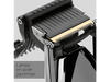 La tondeuse à barbe noire S991E de Babyliss est un petit appareil pratique qui trouvera sa place dans ta salle de bain. Il possède une allure futuriste avec son manche en métal et une tête flottante qui lui confère un aspect unique et une grande flexibilité de mouvement pour un rasage efficace. Il taillera ta barbe avec précision allant de 0.4 mm à 5 mm de hauteur, avec 20 niveaux disponibles de tonte. Tu pourras prendre ton temps pour te raser, car sa batterie a une autonomie d’utilisation de 90 min. Ne pesant que 221 g, cette tondeuse s’utilise facilement et s’allume intuitivement grâce au bouton situé sur son manche. Ses lames en acier japonais sont lavables, pour un meilleur entretien.