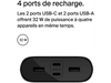 RECHARGE SIMULTANÉE : recharge simultanée de 4 appareils avec une puissance de sortie max. de 32 W. Avec ses 2 ports USB-C et 2 ports USB-A, cette batterie externe vous permet de recharger votre iPhone de zéro à 50 % en moins de 30 minutes***.