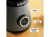 Ce blender est équipé d’un moteur Bosch puissant de 1200 watts qui tourne jusqu’à 30 000 t/m et te permet d’écraser aisément toutes sortes d’ingrédients. Ainsi, tu prépares aussi bien des soupes onctueuses que des tapenades sans oublier les smoothies et la glace pillée pour tes cocktails. Ce blender polyvalent s’avèrera vite être un assistant de cuisine indispensable. Il est non seulement puissant mais aussi très facile à utiliser : il suffit d’appuyer sur le bouton rond plus ou moins en longtemps en fonction de la texture que tu souhaites obtenir. De plus, le couvercle hermétique du pichet dispose d’une ouverture pour ajouter des ingrédients en cours de mélange. Super pratique non ?