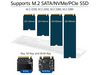Boîtier en aluminium solide pour un SSD SATA/NVMe/PCIe jusqu'à 80 mm avec clé M ou clé B+M