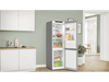Grâce à ses dimensions standards, ses portes réversibles et ses pieds ajustables en hauteur, ce combi s’installe aisément en pose libre dans n’importe quelle cuisine. Il dispose de charnières spécifiques qui permettent une ouverture des portes à 90°C même contre un mur. Tu ne perdras donc pas de place sur le côté. Les portes s’ouvrent facilement à l’aide des poignées discrètes intégrées dans les montants. À l’intérieur du réfrigérateur, l’éclairage LED durable et peu énergivore permet de clairement voir le contenu du compartiment à tout moment. Il offre un volume total de 321 litres, réparti entre un compartiment réfrigération de 218 litres et un compartiment congélation de 103 litres.