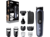La tondeuse AIO7540 All-in-One bleue et noire de Braun t’offre une expérience de rasage complète, avec une précision extrême. Cet appareil multifonction convient aussi bien au rasage de tes cheveux qu’à l’entretien de ta barbe ou de tes poils. Avec sa batterie li-on, il offre 120 minutes d’utilisation continue et se recharge rapidement en 1,5 h via sa station de charge fournie. Tu pourras l’utiliser aussi bien à sec que sous la douche car il est étanche. Livrée avec 9 sabots de coupe, un étui de rangement et une brosse de nettoyage, cette tondeuse deviendra vite indispensable à ton attirail d’hygiène. Pour finir, son design luxueux typique de Braun offre un mélange de textures qui améliorera ta prise en main et évitera les accidents.