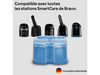Maintiens tes têtes de rasoir propres et aiguisées avec ce pack de 2 cartouches de nettoyage de rechange. Elles sont compatibles avec toutes les stations de charge Smart Care de Braun des séries 198, 202 et 208. Chaque recharge dure environ 2 mois.