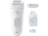 Avec l'épilateur Braun Silk-épil 5 SE5-011 en finition blanche, tu peux tondre et raser tous les poils de ton corps en douceur. Résistant à l'eau et doté d'une poignée antidérapante, il te permet de t'épiler sans effort, même sous la douche ou dans le bain. De plus, grâce à la SmartLight très pratique, aucun poil, même le plus fin, n'échappera à ton attention. En outre, le mode doux permet de réduire au minimum la sensation de douleur. L'appareil est entièrement sans fil et, avec une batterie pleine, tu profites de 40 minutes d’utilisation. Après, tu le rinces facilement sous le robinet.