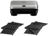 À toi les croque-monsieur et les gaufres, quand bon te semble, avec cet appareil combi de Braun. De couleur grise, il est livré avec 2 plaques de cuisson différentes : une pour les croque-monsieur et une pour les gaufres. Elles s’installent et s‘interchangent très facilement à l’aide des clics de maintien situés sur les côtés. De plus, étant fabriquées en aluminium, les plaques passent sans crainte au lave-vaisselle, pour un nettoyage plus facile. L’appareil a une puissance de 800 watts qui permet de cuire et dorer tes sandwichs et gaufres à la perfection en un rien de temps. Deux voyants lumineux sur le dessus, t’indiquent quand l’appareil est chaud et prêt à être utilisé.