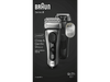 Améliorez votre expérience de rasage avec le rasoir électrique Series 8 de Braun. Ce rasoir à grille offre un rasage qui est doux même sur les barbes les plus épaisses. Profitez d’un rasage puissant quelle que soit l’épaisseur de votre barbe grâce à 4 éléments de coupe renforcés par la technologie sonique. La tondeuse ProTrimmer intégrée coupe parfaitement les poils, même les plus difficiles à atteindre. Ce rasoir électrique dispose d’une tête qui pivote à 40° s’adaptant ainsi aux contours du visage pour garantir un rasage de près confortable même dans les zones difficiles à atteindre. Rasoir entièrement étanche pour une utilisation sur peau sèche ou mouillée. 100 % fabriqué en Allemagne, il est doté d’une batterie Li-Ion qui offre une autonomie de 60 minutes. Fourni avec base de recharge.