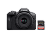 L'appareil photo hybride Canon EOS R100 en noir avec objectif RF-S 18-45 mm et carte SD de 64 Go incluse tu as tout entre les mains pour débuter dans la création. Son capteur CMOS APS-C de 24,1 mégapixels et le processeur DIGIC 8 assurent des photos nettes aux détails éclatants. Même en faible luminosité, tes images restent claires grâce à une sensibilité ISO pouvant atteindre 32 000. L'objectif polyvalent RF-S 18-45 mm convient aussi bien aux photos grand angle qu'aux portraits. De plus, le viseur électronique et l'écran LCD de 2,95 pouces (7,5 cm) facilitent le cadrage. Tu filmes en 4K, captures l'action à 6,5 images par seconde et partages tes créations instantanément via Wi-Fi et Bluetooth. Enfin, avec ses 356 grammes et son boîtier résistant aux éclaboussures, tu l'emportes partout sans souci.