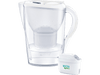 La carafe Marella est équipée de deux filtres Maxtra Pro All-in-1 qui assurent une filtration efficace, garantissant ainsi une eau purifiée au goût agréable. Le filtre utilise un maillage ultrafin pour retenir les particules provenant des canalisations ainsi que des micro-perles de charbon actif, issues d'écorces de noix de coco, pour réduire le chlore et les substances altérant le goût de l'eau. Les perles échangeuses d'ions adoucissent ensuite l'eau en diminuant la présence de métaux tels que le plomb et le cuivre. Cette technologie assure une eau au goût agréable et protège tes appareils ménagers des résidus de tartre. Enfin, l’indicateur BRITA Memo situé sur le dessus t'indique quand remplacer la cartouche, pour une filtration optimale. Chaque cartouche a une durée de vie de 4 semaines ou 150 litres d’eau filtrée.