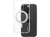 Cette coque transparente et argentée Feature Kickstand pour iPhone 16 Pro de Care protègera ton smartphone des chutes accidentelles. La coque est compatible avec le chargement sans fil MagSafe.