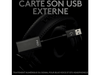 Casque audio / Oreillettes en simili cuir / Oreillettes en tissu / Carte son USB externe / Micro détachable / Câble de 2 m avec commande de volume et sourdine / Câble pour téléphone portable / Séparateur en Y pour micro et casque / Pochette de transport / Manuel