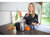La finition robuste en acier inoxydable avec des touches noires confère à cet extracteur de jus un look élégant passe-partout. Le pichet à jus de 1,25 litre en plastique transparent te permet de voir la couleur et consistance de ton jus à la sortie du pressoir. Grâce au couvercle également transparent du récipient à pulpe de 1,8 litre tu gardes un œil sur le remplissage du contenant. De plus, la grande ouverture de remplissage très pratique te permet d'introduire sans effort des gros morceaux de fruits et légumes ou de plus grandes quantités en une seule fois. Et en un rien de temps, tu prépares donc une grande quantité de jus frais pour toute la famille avec cet appareil très fonctionnel.