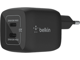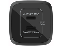 Rechargez un MacBook ou rechargez rapidement et en simultané un iPhone 13 et un appareil Galaxy avec ce chargeur secteur GaN à double port USB-C, à la fois puissant et ultracompact. Il est doté de la technologie GaN, de l’USB-C PD 3.0 et de la technologie de recharge PPS. Il offre ainsi une recharge rapide et sécurisée, sans surchauffe ni surcharge. Profitez d’une puissance pouvant atteindre 45 W (lorsqu’un seul port est utilisé) pour recharger votre MacBook Pro ou, lorsque les deux ports sont utilisés en même temps, profitez d’une puissance partagée, jusqu’à 25 W sur port du haut et jusqu’à 20 W sur le port du bas. Grâce à son design compact, il est idéal aussi bien pour les voyages que pour la maison.