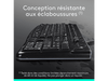 Ce clavier plat ne se contente pas d’être élégant : il est également solide avec son fini étanche,* ses pattes d’inclinaison robustes et ses touches durables.