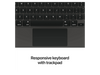 Touches rétroéclairées confortables, intégrant un mécanisme à ciseaux avec une course de frappe de seulement 1 mm qui conjugue réactivité et discrétion.