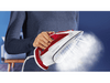 Pour adapter la température au type de tissus à repasser, l’appareil dispose de 5 niveaux de chauffe. Avec ses 2500 watts de puissance, il est très performant et chauffe rapidement. Son réservoir d’eau de 270 ml, facile à remplir grâce à l’ouverture XL, te permet de repasser une grande quantité de linge en une seule session. Le fer diffuse en continu un flux de 45 grammes de vapeur par minute pour un repassage facile. Cependant la fonction pressing, qui diffuse un jet de 195 gr/min, offre plus de puissance pour éliminer les plis plus récalcitrants et pour aplanir les tissus épais.