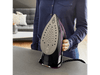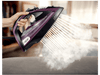 Pour adapter la température au type de tissu à repasser, l’appareil dispose de 5 niveaux de chauffe. Avec ses 3000 watts de puissance, il est très performant et chauffe rapidement. Son réservoir d’eau de 350 ml, facile à remplir par l’avant, te permet de repasser une grande quantité de linge en une seule session. Le fer diffuse en continu un flux de 60 grammes de vapeur par minute pour un repassage facile. Cependant la fonction pressing, qui diffuse un jet de 240 gr/min, offre plus de puissance pour éliminer les plis plus récalcitrants et pour aplanir les tissus épais.