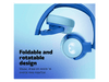 Avec le casque Fresh 'n Rebel Code Junior de couleur bleue, tu seras un(e) vrai(e) rebelle dès le premier jour. Ce casque coloré, conçu pour les enfants à partir de 3 ans, leur permet d'écouter de la musique, des vidéos et des jeux en toute sécurité. Par exemple, la limite de volume Safe Sound de 85 dB garantit la protection de leurs oreilles. Grâce au câble Buddy Beats,il est possible de relier un deuxième casque Code Junior pour que 2 enfants écoutent ou regardent le même divertissements sans déranger les adultes. Le logo joyeux avec effet lumineux sur les deux côtés de l'appareil et les autocollants permettent aux enfants de personnaliser leur casque. L'imposante batterie offre 48 heures de plaisir d'écoute (20 heures avec les lumières allumées) et est déjà complètement chargée au bout de 2 heures.