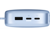 • Charger l'image dans la galerie, Une batterie externe bleu clair avec deux ports en haut et un cadre argenté.
