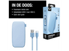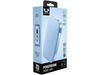 Une batterie externe Fresh 'n Rebel bleu clair dans son emballage. Elle possède des ports USB et des fonctions de sécurité.