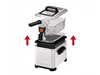 La friteuse a une capacité de 4 litres, ce qui permet de préparer une grande quantité de frites et de snacks à la fois. Ainsi, tu passes moins de temps en cuisine et tu peux déguster un délicieux repas rapidement. La friteuse est compacte et, si le réservoir est rempli d'huile, elle pèse environ 5,6 kg. Elle est entièrement démontable et, à l'exception de l'élément chauffant, toutes les pièces passent au lave-vaisselle. Tu peux donc la nettoyer facilement, en évitant les dépôts de graisse sur la friteuse.