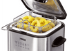 Friteuse-Fondue complète, en acier inoxydable, idéale pour préparer une fondue bourguignonne traditionnelle dans l’huile mais aussi pour une fondue au fromage, au chocolat ou une fondue chinoise (aux légumes au bouillon). Capacité de 1,2 litre, thermostat réglable, voyant lumineux et anneau à fondue. Couvercle amovible très pratique avec filtre permanent et hublot. Fournie avec panier à friture et 6 fourchettes à fondue.