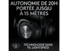La technologie sans fil LIGHTSPEED, disponible uniquement avec Logitech G, vous permet de jouer sans fil, sans compromis sur la latence, la connectivité ou la batterie. Jouez avec une liberté totale grâce à une autonomie supérieure à 20 heures et une portée jusqu'à 15 mètres grâce à une fréquence fiable de 2,4 GHz.3La longévité des piles est susceptible de varier en fonction de l'environnement et du mode d'utilisation. Les 20 heures d'autonomie de la batterie sont basées sur un réglage du volume du casque à 50%.