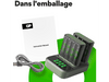 | Contenu de la livraison | 2 x Batterijlader M451 / Speed Charger Dock (USB) D851 / 8x GP ReCyko batteries préchargées AA 2600mAh / Câble micro-USB / Manuel |