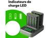 Charge tes piles AA et AAA rapidement avec ce pack de deux chargeurs M451 qui se connectent à la station de charge D851 de GP Batteries. Tu peux recharger jusqu’à 8 piles en même temps et voir leur état de charge sur la station. Grace à une puissance élevée de 2600 mAh, tes piles seront prêtes à être utlisées après 1,5h.