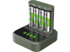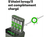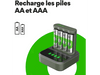 Recharge tes piles AA avec ce chargeur B441 vert de la marque GP Batteries. Le chargeur est livré avec 4 piles AA rechargeables que tu pourras recharger en même temps avec une puissance de 2100 mAh fournie par la station de charge qui t’indique le niveau de charge de chaque pile.