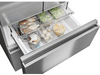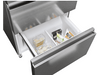 Ce frigo-congélateur se compose d’un compartiment réfrigération de 262 litres dans la partie supérieure et d’un compartiment congélation de 140 litres dans la partie supérieure. Le frigo s’ouvre à l’aide de deux portes à la française, face à face, garantissant ainsi une grande ouverture pour un accès aisé au contenu. À L’intérieur de nombreuses clayettes en verre solide et des tiroirs permettent de ranger efficacement les aliments. Le congélateur comprend 2 grands tiroirs qui s’ouvrent indépendamment, garantissant une meilleure conservation en évitant les variations de température à chaque ouverture.