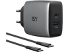 Ce chargeur GaN gris de la marque ISY permet de charger rapidement et en toute sécurité tous tes appareils sans fil. D'une capacité maximale de 45 watts, le chargeur dispose d'un port USB type-C et d'un port USB type-A et s'appuie sur la technologie innovante GaN.