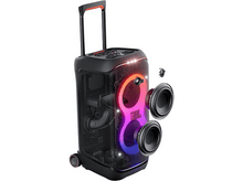 Ce haut-parleur robuste, au design bien pensé, n'est pas super compact mais grâce à sa poignée extensible et à ses roues robustes à l'arrière, il est facile à transporter. Tu l'emmèneras donc facilement chez des amis pour mettre de l'ambiance. , Cette PartyBox élégante est fabriquée à partir de matériaux recyclés et emballée dans du papier durable certifié FSC. En outre, elle est conforme à la norme IPX4 relative à la résistance aux éclaboussures d'eau. Tu l'utililseras donc sans crainte dehors, au camping ou au bord de la piscine. Vive les soirées estivales !