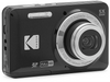 L’appareil photo Pixpro FZ55 de Kodak séduit d'abord par son format compact et son poids léger de seulement 106 g. Il combine discrétion et facilité de transport : en effet avec ses dimensions de 9,15 x 5,65 x 2,29 cm il tient dans la paume de ta main et se glisse facilement dans un sac ou une poche pour que tu l’aies toujours à portée de main durant tes aventures les plus spontanées. Sa finition noire élégante se mélange aux rebords argentés tout en ajoutant une touche sobre et intemporelle. Sa prise en main est intuitive et parfaite pour les débutants, comme pour ceux qui cherchent la simplicité. Son menu de réglages clair te permet de passer rapidement d’une fonction à une autre, pour que tu ne rates aucun moment.