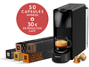 La Nespresso Essenza Mini de Krups est une machine à café compacte et élégante pour tous ceux qui aiment déguster une bonne tasse de café à la maison. Grâce à son design élégant et peu encombrant, cette machine trouvera facilement sa place dans n'importe quelle cuisine, aussi petite soit-elle. Ce bundle comprend tout ce dont tu as besoin pour démarrer immédiatement : une machine à café Essenza Mini Black, 50 capsules best-sellers (10x Ristretto, 10x Vienna Lungo, 10x Volluto, 10x Cosi, 10x Nocciola) ainsi qu'un bon d'achat de 30 € (3 x 10 €), à utiliser sur nespresso.com ou dans les boutiques Nespresso. En 25 secondes, la machine est à température et tu n'as plus qu'à appuyer sur un bouton pour préparer un espresso corsé ou un lungo doux. L'Essenza Mini apporte le goût familier de Nespresso dans ta cuisine, avec des arômes équilibrés, un corps riche et une mousse veloutée. La machine consomme peu d'énergie et les capsules sont composées d'au moins 80 % d'aluminium recyclé.