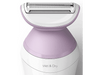 Le rasoir féminin Ladyshave Série 6000 de Philips de couleur blanche et lilas a été conçu pour offrir un rasage confortable et précis, que ce soit sur peau sèche ou humide. Cet appareil est doté d'un manche ergonomique pour une prise en main confortable pendant le rasage.