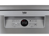 Ce lave-vaisselle BEKO en pose libre et en Inox connait des dimensions standards (59 x 85 x 60 cm) : il se glissera donc aisément sous un plan de travail. Il a une capacité de 16 couverts et est équipé de trois paniers de rangement ajustables en hauteur pour optimiser l’espace intérieur. Le tiroir à couverts, situé en haut, facilite le tri des couverts ; le panier intermédiaire pour les tasses et les verres est doté de 2 clayettes rabattables pour positionner des petits contenants ; et enfin le tiroir du bas dispose de picots pliables pour faciliter le rangement des gros plats et casseroles.