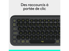 Le clavier sans fil Pop Icon Keys de Logitech en disposition AZERTY et en finition noire est un appareil pratique, confortable à utiliser et à l’esthétique audacieuse. Grâce à ses touches plates et arrondies, tu bénéficies d’une frappe silencieuse. Le clavier Pop possède des touches programmables en raccourcis avec Logi Options+ pour te faire gagner du temps, et peut se connecter à un maximum de 3 appareils aux systèmes d’exploitation différents.