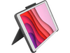 La cover avec clavier intégré Combo Touch de couleur grise de LOGITECH, représente l'apogée des étuis pour iPad. Il fusionne de manière synergique un pavé tactile haute précision et un clavier AZERTY rétroéclairé de taille standard, offrant ainsi une expérience utilisateur inégalée. Les gestes intuitifs offrent une navigation fluide et réactive sur l'iPad, et la polyvalence du design se manifeste à travers quatre modes d'utilisation, permettant une adaptation dynamique à divers scénarios d'utilisation. Optimisé pour une précision accrue, le pavé tactile du Combo Touch améliore et simplifie de manière significative l'interaction avec des applications essentielles.