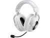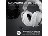 Le casque gaming Pro X2 Lightspeed de Logitech de couleur blanche allie une qualité audio professionnelle à un confort exceptionnel. Il se connecte entièrement sans fil, offre une portée allant jusqu'à 30 mètres et dure jusqu'à 50 heures lorsque la batterie est complètement chargée.