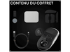 Souris gaming sans fil PRO X2 SUPERSTRIKE, récepteur sans fil LIGHTSPEED, câble de charge/données USB-A vers USB-C, prolongateur de portée du récepteur, porte POWERPLAY, ruban adhésif antidérapant (en option), chiffon de nettoyage, manuel d'utilisation
