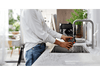 Le panneau de commande tactile et intuitif, qui se situe sur le devant de l’appareil, permet de sélectionner le type et la quantité de café souhaité ainsi que son intensité. L’appareil fonctionne très simplement et t’indique, avec un voyant lumineux, lorsque le réservoir d’eau est vide et lorsqu’il faut vider le bac de marc de café. Tu as la possibilité de régler la mouture du café, il y a 13 degrés possibles, ainsi que la dureté de l’eau. Le moulin à grain se nettoie facilement sous l’eau du robinet, alors que les bacs de récupération et la grille porte tasse passent au lave-vaisselle.
