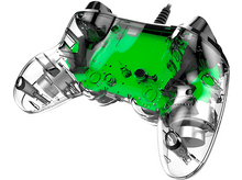 La coque transparente et les LED rétroéclairées font briller la manette dans le noir
